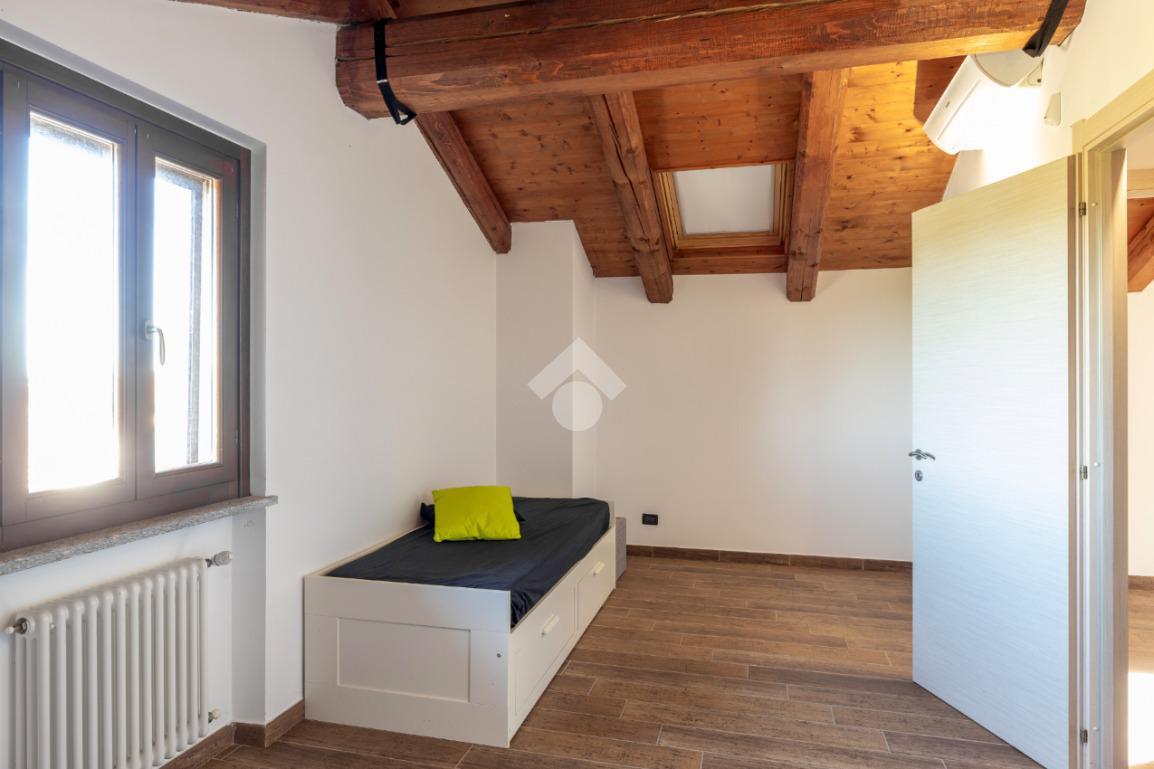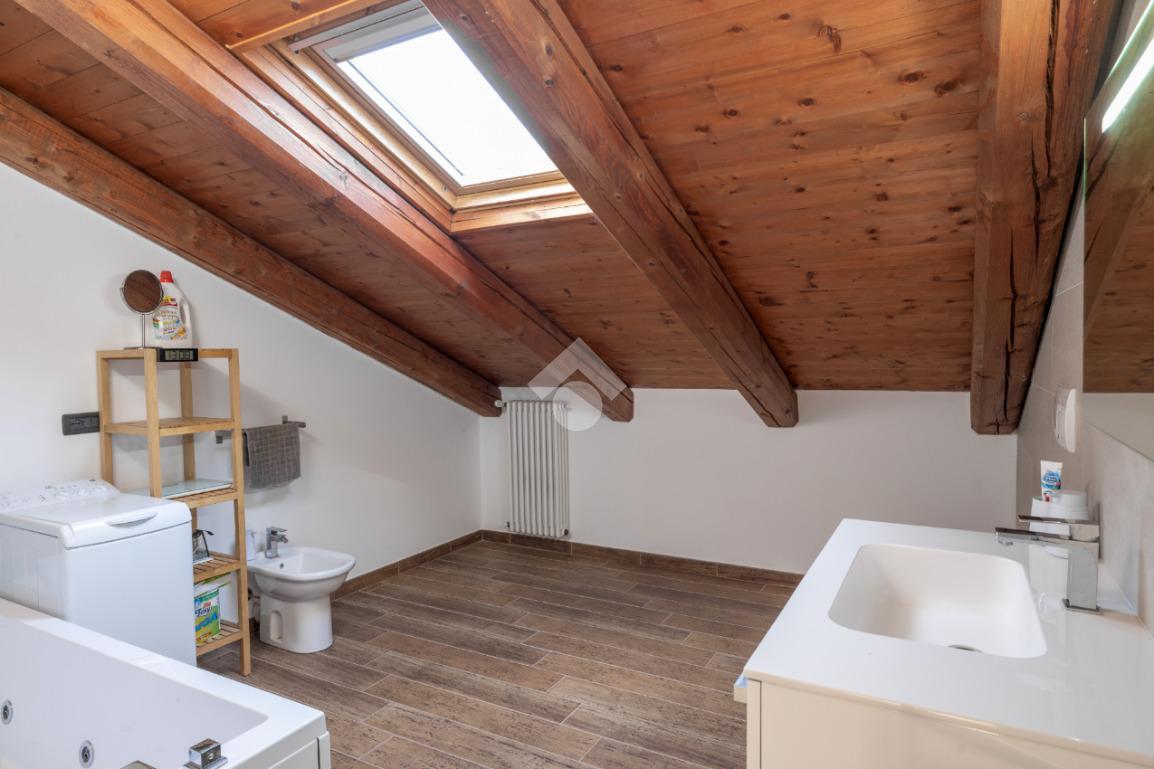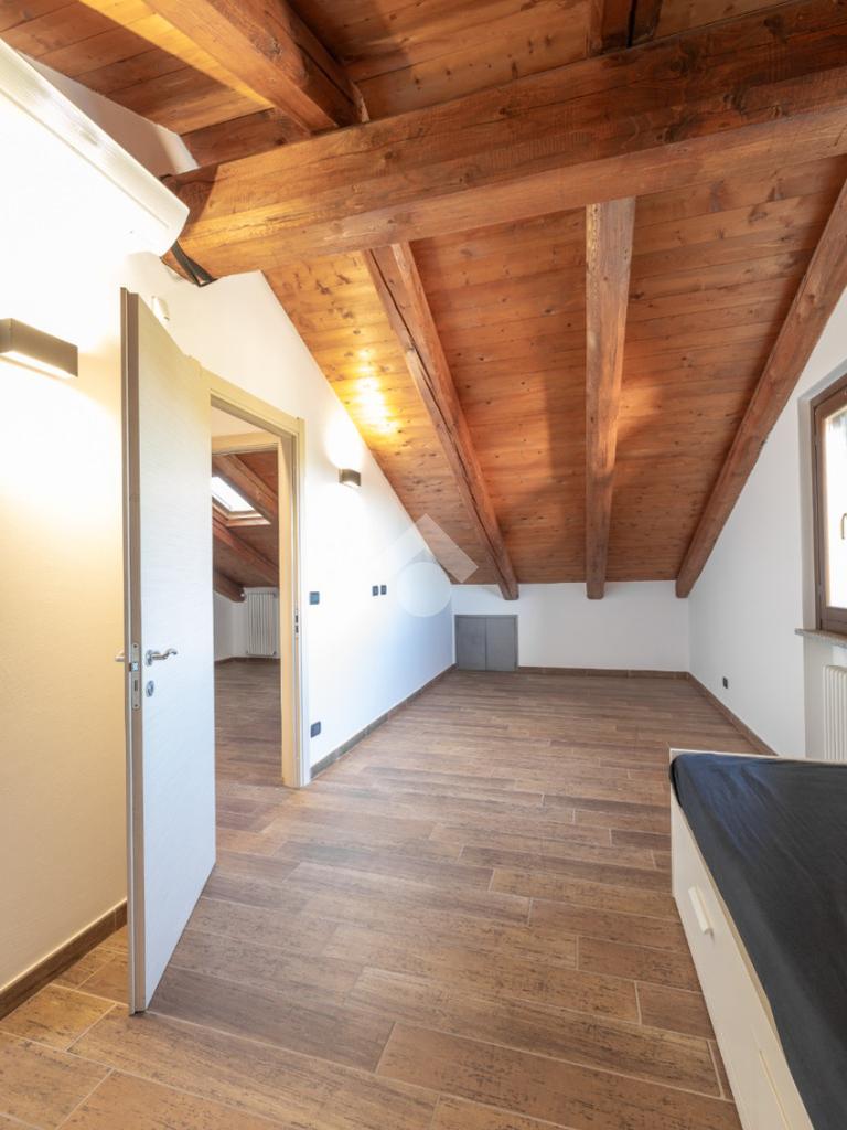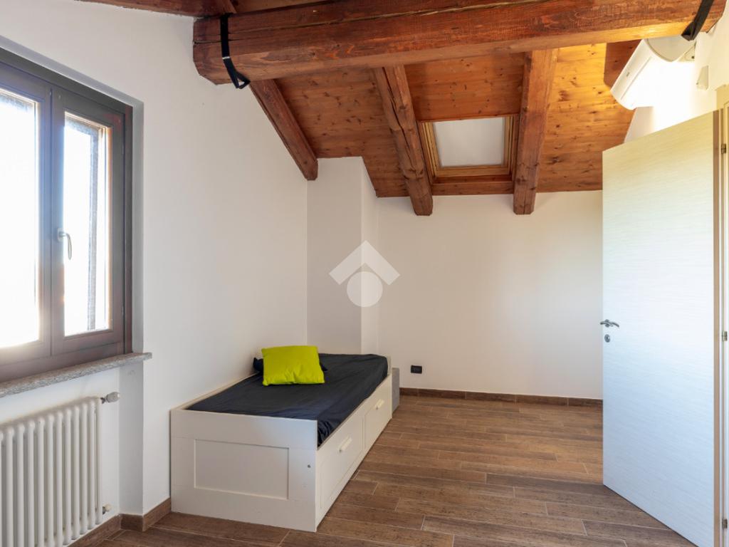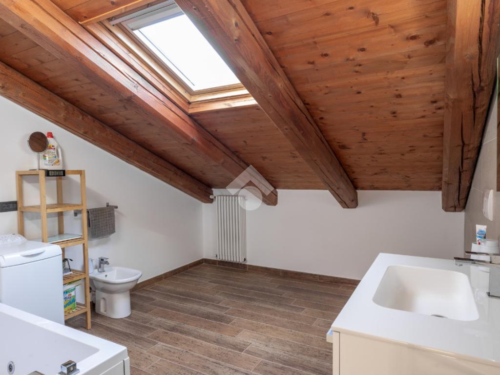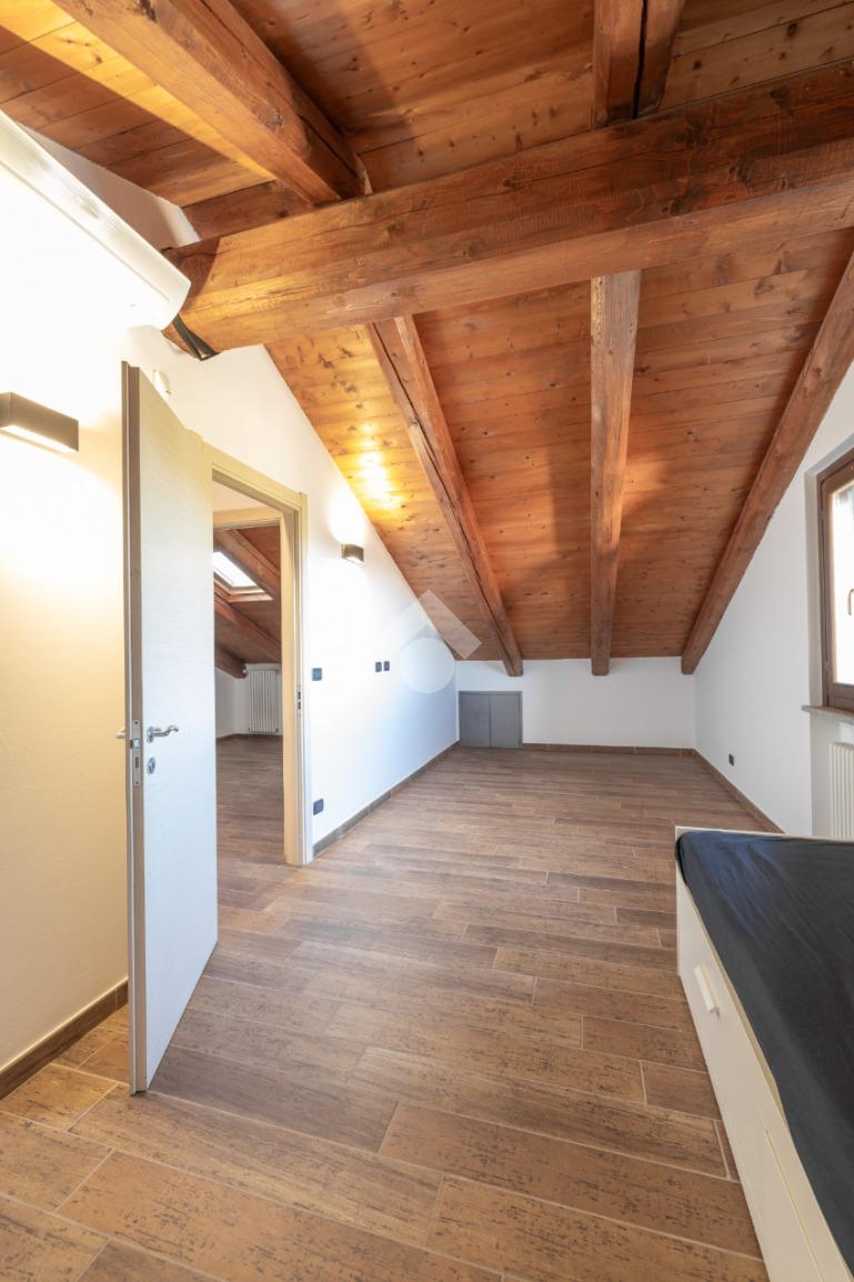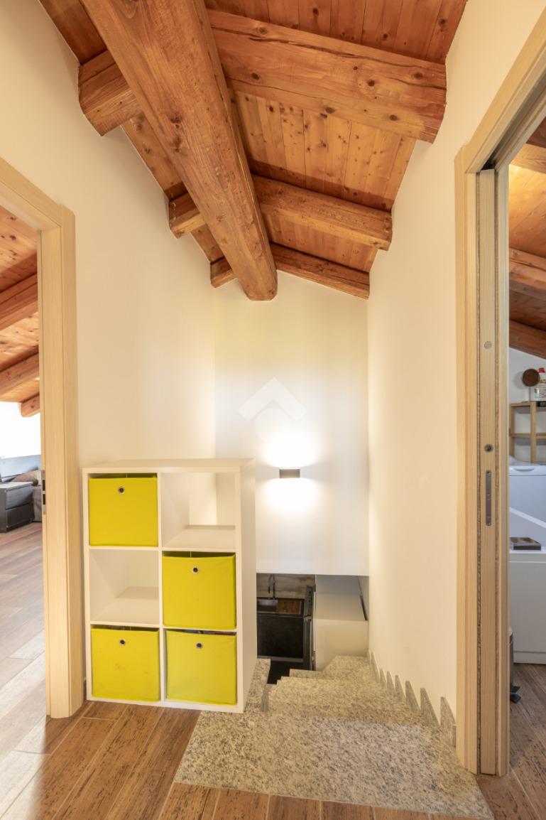 La scala interna, rivestita con pietra di luserna, porta al piano sottotetto caratterizzato dal tetto con le travi a vista, composto da ulteriori locali da poter utilizzare.