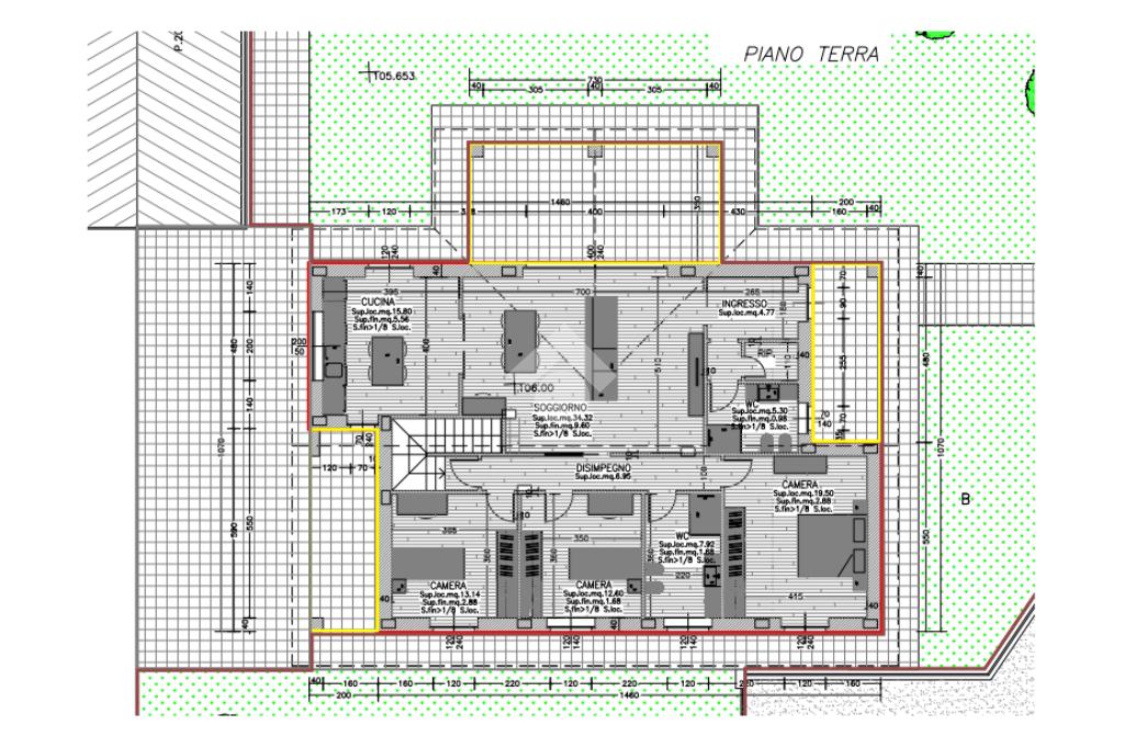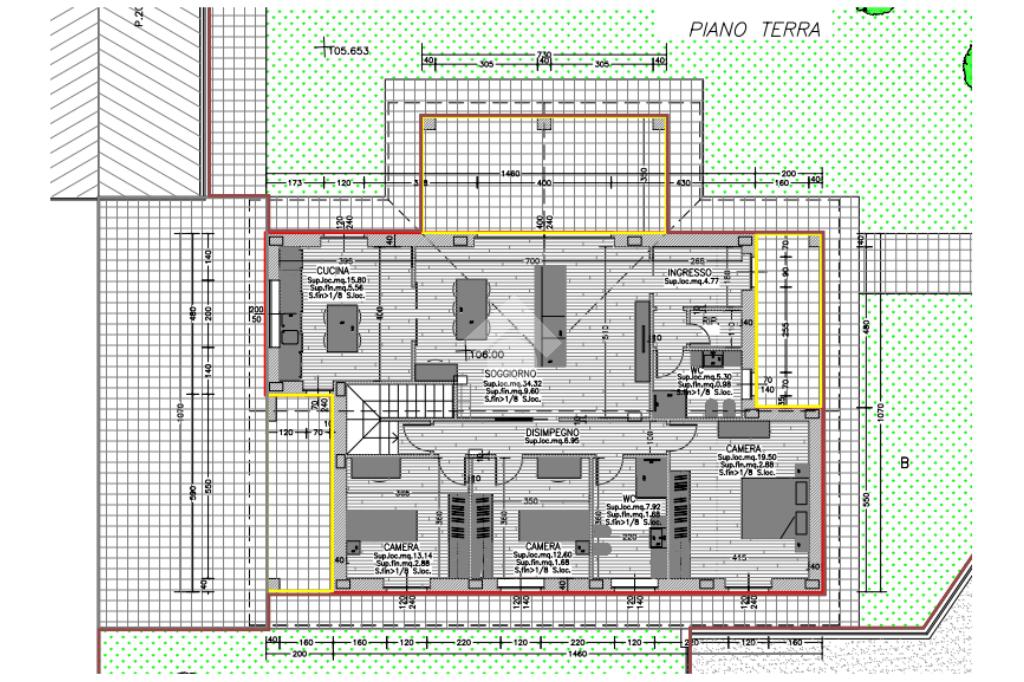 Esternamente, la villa è impreziosita da un’area verde pianeggiante di circa 570 mq, caratterizzata da un’ottima esposizione che garantisce luce naturale per tutto l’arco della giornata e offre la possibilità di creare giardini e zone relax.